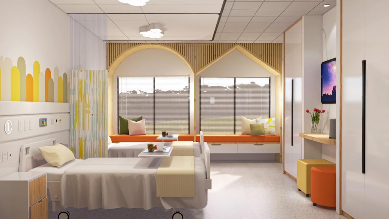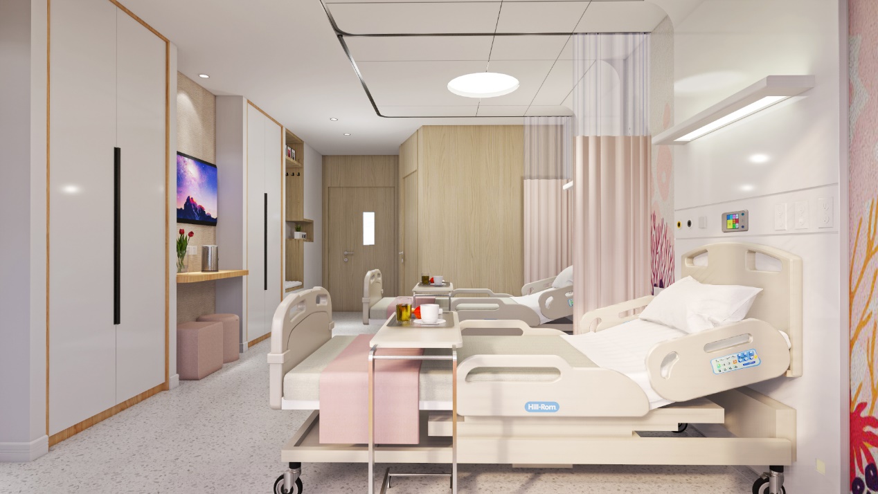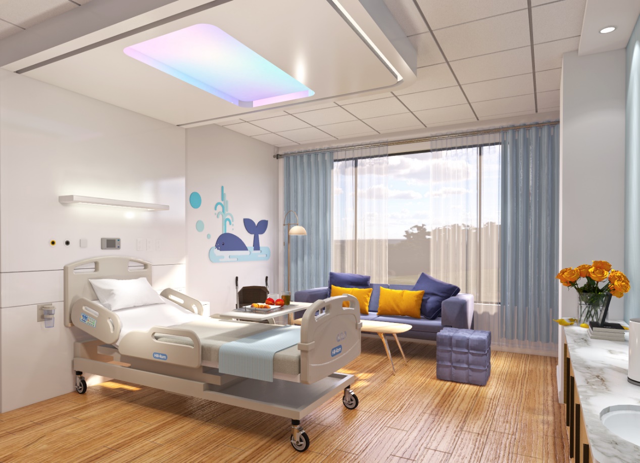 妇儿医院的病房主要分为两种类型,一种是单床的VIP病房,另一种是双床的标准病房。将病房按照不同的功能进行分区设计,满足不同患者的多层次需求。分为诊断区、护理区和家庭区,在家庭区有沙发或卡座,为陪护和探视人员提供休息区域,满足工作、用餐、会客等需求。
