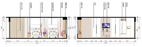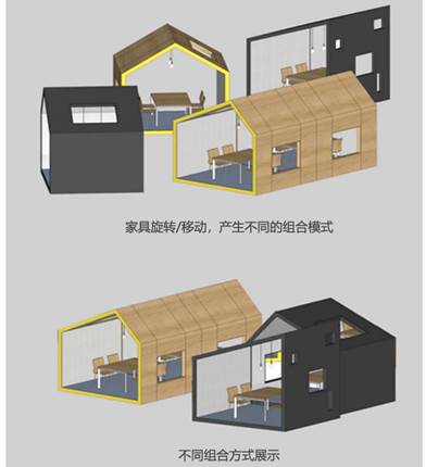 “边界模糊与利用”贯穿于整个空间设计当中,个功能空间边界多采用可移动变化的门窗,且对部分边界界面进行收纳、展示等功能的运用。
