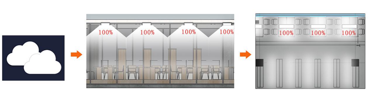 恒照度模式适用于图书馆中的阅览区域,综合考虑到读者开展阅览行为的特征,对阅览空间人工照明实施智能管理与控制,通过在阅览桌面设置光敏传感器,实时监测桌面的照度,实时调节光照强度,使阅览桌面照度稳定在300lx。通过恒照度控制模式的加持,不仅保护了读者的视觉健康,提升使用效果,还起到了绿色节能的作用。