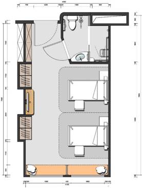 双床病房平面图 单床病房平面图
