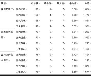 各展厅物理环境二级指标描述性统计