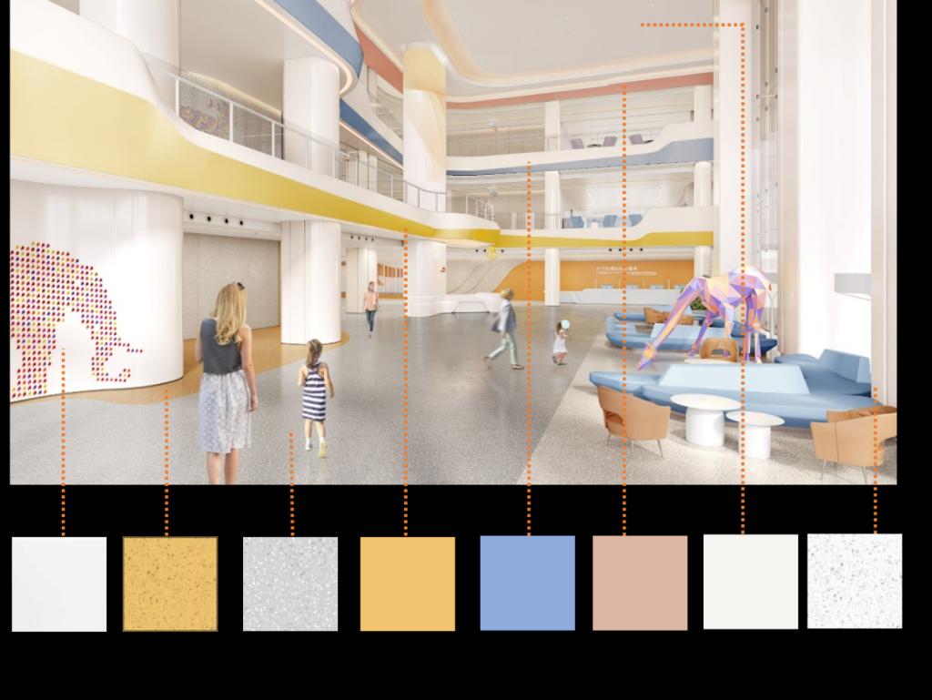 深圳市福田区妇儿医院室内设计以医学模式的转变为背景,情感化设计理论为基础,通过对医院室内环境的组成要素和使用者进行分析,结合国内外相关案例,根据医院室内环境情感化设计策略,应用于设计实践中。