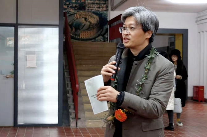 接着,钱思书记(图6)表示,在活动筹备和开展的过程中感受到了景观学系的温暖。景观学系虽然师生人数不多,但老师和同学们对工作、学习都认真投入。他认为,本次实习显示出景观学系的人才培养不仅注重专业基础,同时也强调社会责任。最后,钱思书记预祝此次实习联展圆满成功。