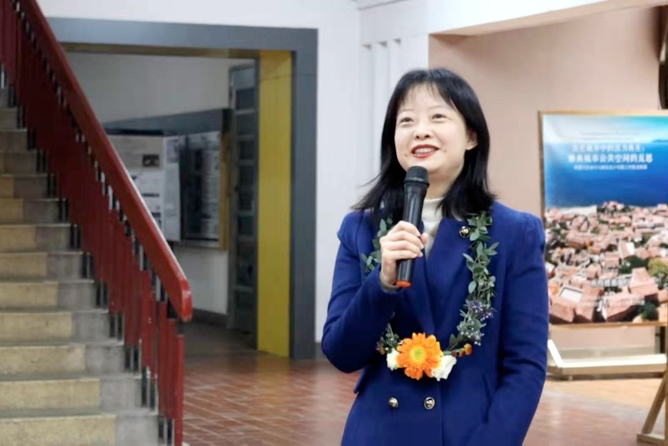 首先,主持人殷利华老师(图2)对此次实习联展进行了简要的介绍,并表示三个实习对风景园林16级和17级的同学具有重要意义。云南四个城市的“综合实习”课,由韩依纹、秦晴两位老师指导,风景园林1601班同学对景观建筑、历史城镇、国家公园、街巷空间等有了较为全面综合的了解;秦晴老师带领四川成都的现场“风景园林植物认知实习”,1701班同学们不但了解到了风景园林植物景观特色,对其植景配置技能也有所提升;艺术设计系匡小荣老师指导该班的江西婺源“水彩实习”,强化了同学们的色彩表现和形体表达能力。