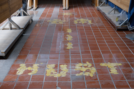 图10:用银杏叶“拼字”铺地表达实习地点