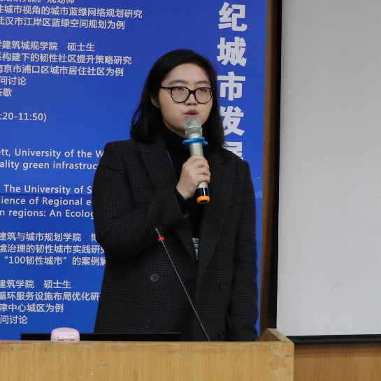 武汉市规划研究院规划师任伟以“蓝绿网格体系”为切入点,提出了承受-韧性-再造三个阶段的作用机制,构建韧性城市安全屏障。总结出“西织补、东构建”、“强骨架、建公园、织绿网”的优化策略和蓝绿网络韧性体系,并在生态韧性、社会韧性、工程韧性三个方面提出八个行动计划。重庆大学建筑城规学院硕士生贺彦卿把影响城市社区韧性的因素分为5个一级指标和31个二级指标,构建了评价指标体系,在此基础上他对南京市一个居住小区进行评价,总结出韧性城市的发展策略。同济大学太阳集团网站8722博士生李纯选取全球“100韧性城市”项目中的16座韧性城市,从水体退化、个体退化、雨洪风险三个方面进行问题为导向的讨论,解析它们在面对具体问题时的应对措施,进而总结出实践经验。天津大学建筑学院硕士生李泽钦根据城市居住区新规中的五分钟、十分钟、十五分钟生活圈构建了“社区物质循环服务设施”的评价体系,通过分析现状的设施覆盖率、人口协调指数与物质循环历程,提出设施的优化策略。