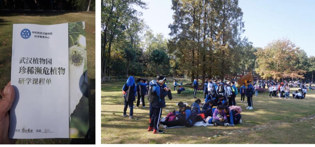 11月19日活动当天早晨8点,我系5位师生和另17位导师们在植物园集合完毕,一起耐心等待武昌文华中学初一至初三21个班级,共950多名学生的到来。