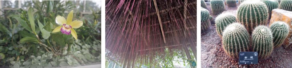 图9 温室兰花(左)、锦屏藤(张明明摄)、金琥(彭越摄)