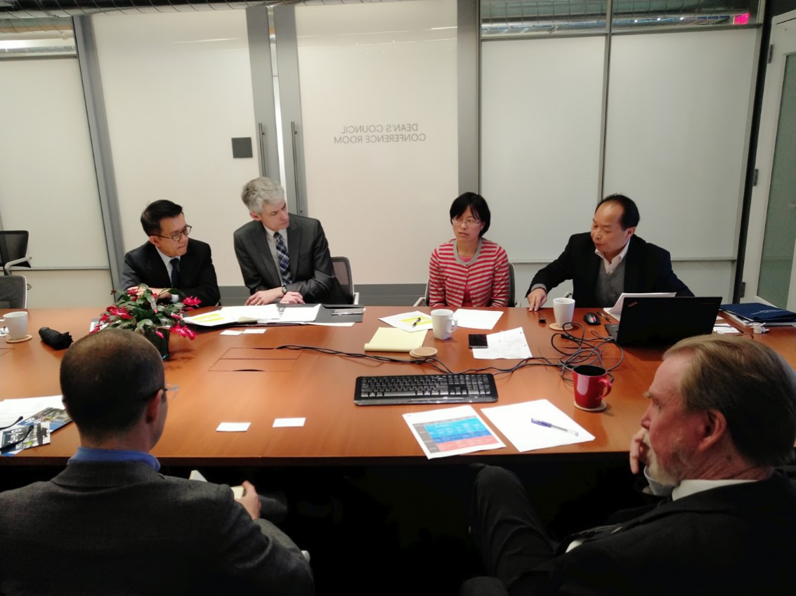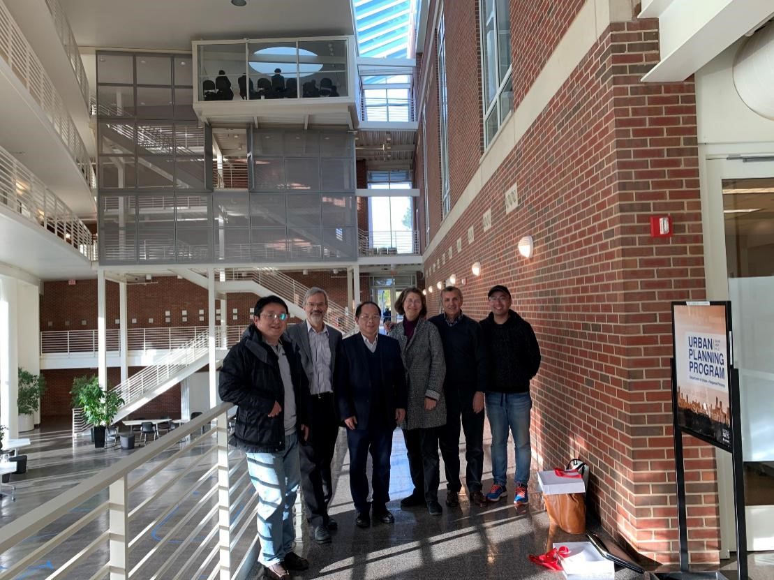 11月1日,代表团访问伊利诺伊大学香槟分校,与规划系主任Rolf Pendall教授、建筑系主任Mohamed Boubekri教授、景观系主任Fairchild Ruggles教授进行了院系联合会谈。双方分别介绍了各自学科发展情况,黄院长向对方展示了我院近年来中外联合设计工作营成果,诚挚邀请对方教师来我院讲学、举行联合设计教学等活动。