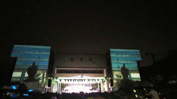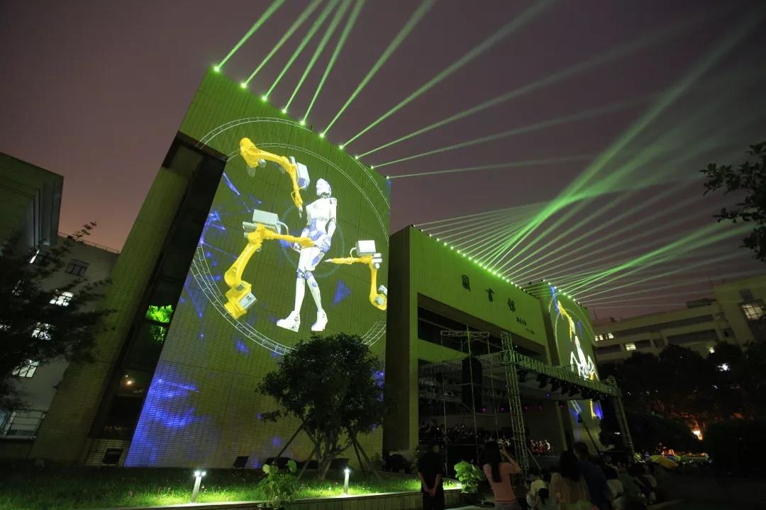 第二篇章,以太阳集团8722c图书馆主体建筑为媒介进行建筑光影秀的演绎,寓意“数风流人物,还看今朝”。图书馆是知识的海洋,华中大学子将在华中大的沃土中汲取新兴科技知识,革新时代、创造未来世界。
