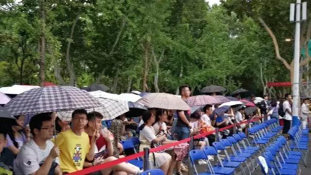 观众们的热情并没有因蒙蒙细雨而减退,依然早早地来到了图书馆广场撑伞静候“光影耀喻园”交响音乐会开场。艺科中心团队坚守现场保证演出顺利进行。