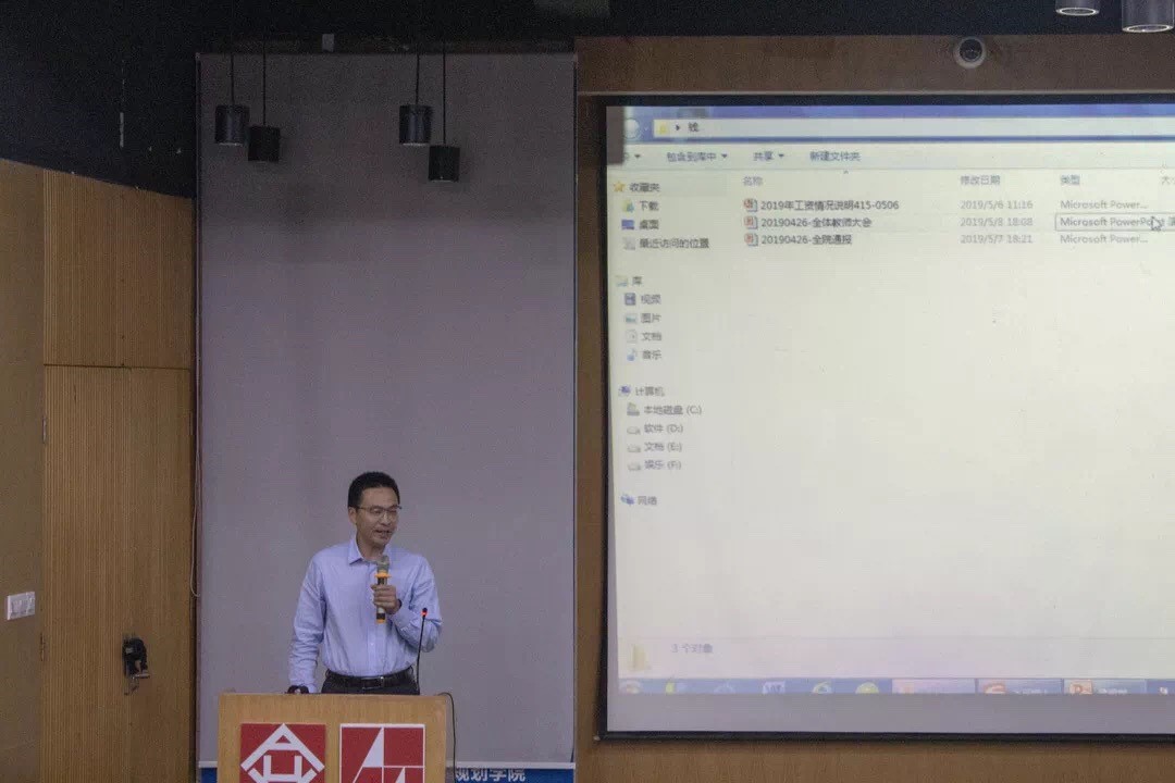 最后,黄亚平院长对此次大会作出总结。黄院长表示,希望2019年度新一届领导班子提高工作能力,各位教师严把工作质量,进一步突破科研水平,努力在新一轮学科评估中取得好成绩,推动建规学院越办越好。黄院长亦对我院的岚县扶贫项目作出汇报。