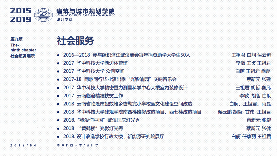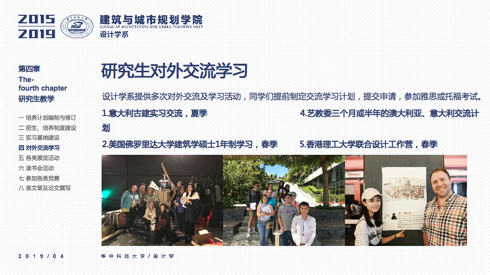 新增实习基地:中信武汉设计院、中南设计院、武汉园林设计院、荆州工艺美术院等。