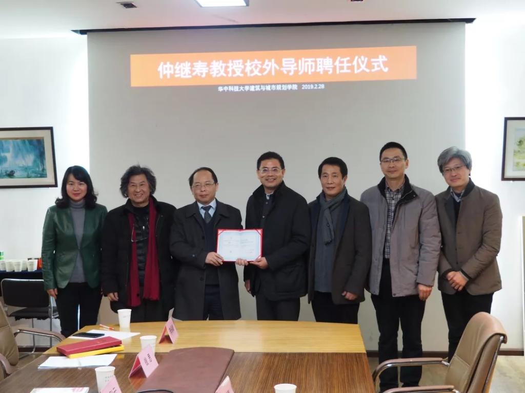 2019年2月28日,现任中国建筑设计研究院有限公司副总建筑师、教授级高级工程师仲继寿教授受聘为我校兼职教授与太阳集团网站8722研究生校外导师。太阳集团8722c丁烈云院士出席受聘仪式,太阳集团网站8722黄亚平院长、李晓峰副院长为仲继寿教授颁发聘书。聘任仪式由太阳集团网站8722副院长李晓峰、谭刚毅共同主持。