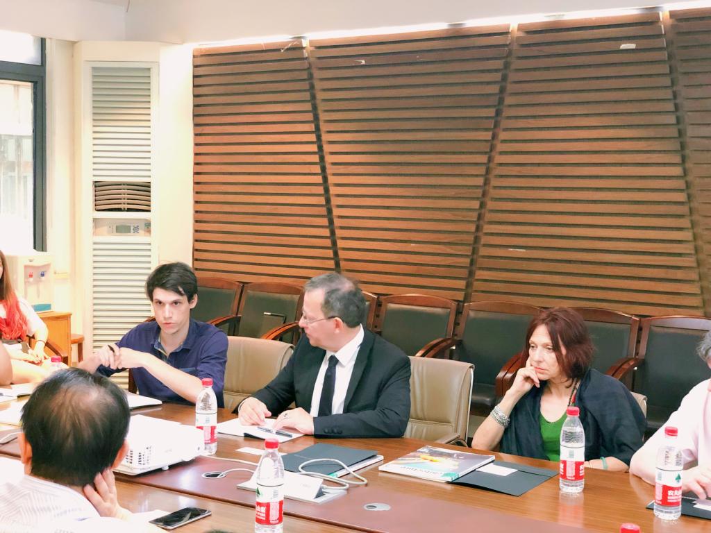 赵守谅副教授为国际交流部负责人Arnaud Miseriaux详细解释框架协议内容