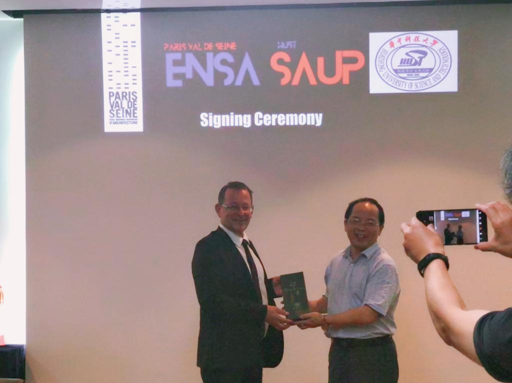 此次,双发签定了每年两次(法方来汉,中方赴法)的中法联合设计工作营,以及两校本科生为期一学期交换项目的协议。双方都对未来能进行研究生互发学位表以期待,也为两校学生获得更多拓展国际视野的机会感到欣慰。校长Philippe Bach借此为大家介绍了法国其他学校与中国高校互发建筑学研究生学位的流程。