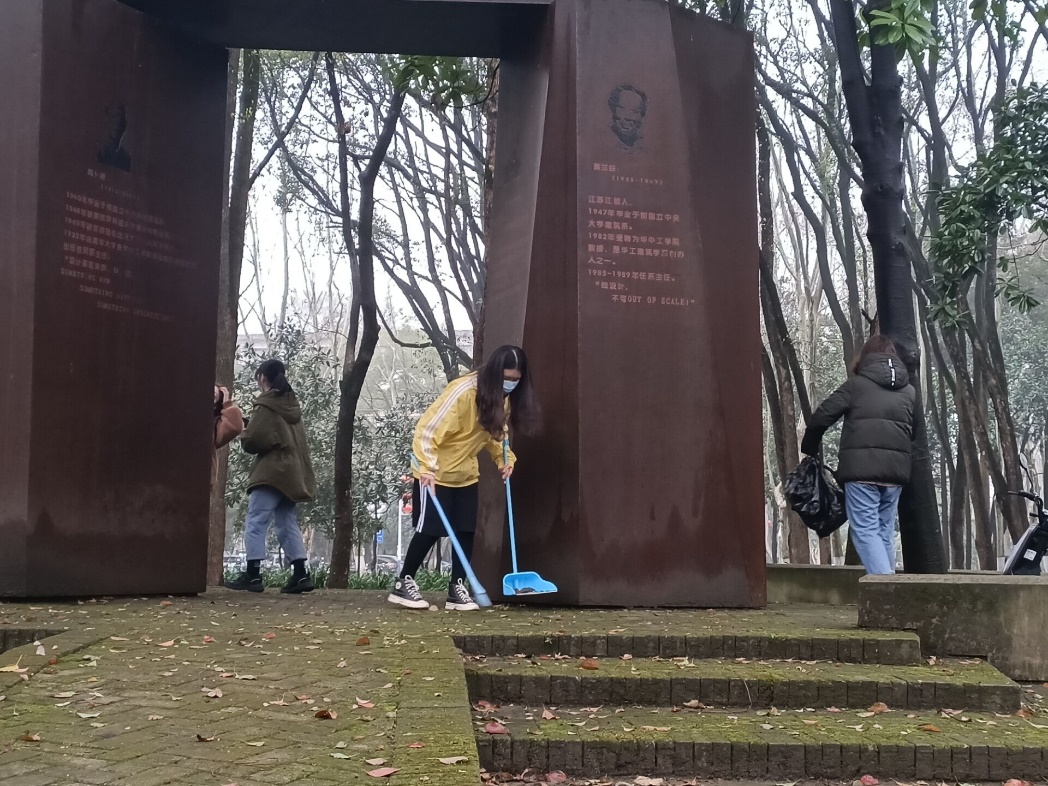 下午三点,数媒1801班的同学在南四楼集合,班长杨洪龙同学给大家讲述了雷锋同志为人民服务的奉献事迹,接着为大家分配了卫生清洁任务。班上同学拿着卫生工具来到南四楼前的雨水花园,由于寒假原因,整个花园布满了落叶和随处可见的垃圾。于是班上同学开始有条不紊的行动了起来。