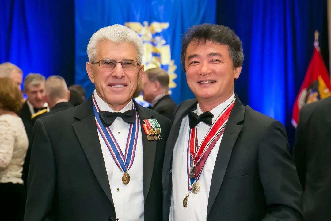 2017年在军事工程师协会院士团晚宴上与军事工程师协会主席Bob Wolff, FSAME 合影