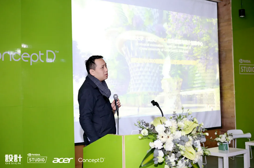 桂宇晖教授讲道:设计在创造新的东西,但在创造的同时产生了大量废弃物。中国地质大学筹划成立了ERCI生态修复与设计创意中心,主张将国内城市打造为花园城市。桂宇晖教授同时介绍了忠峒里民居改造设计、巴东改造设计、秦岭终南山隧道景观照明设计等案例。希望最终人与自然的结合还原到顺其自然的意境。
