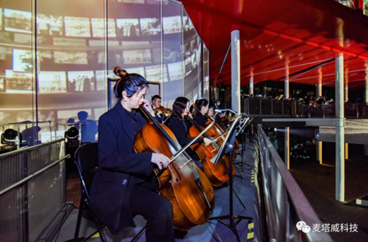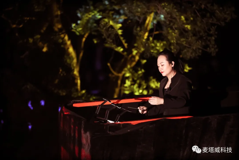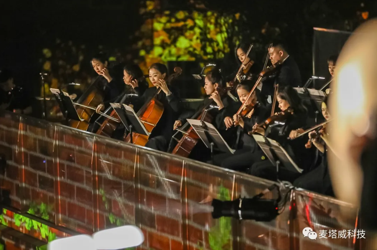 著名指挥家周雯,首席小提琴朱莹带领的湖北交响乐团的40位演奏家们,带来扣人心弦的现场演奏,与如梦似幻的光影秀完美结合。