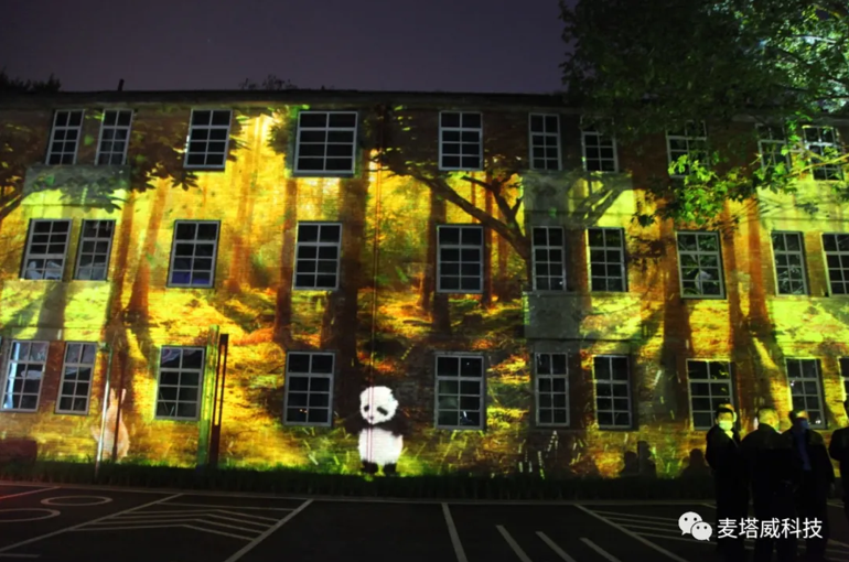 签到台前,充满时光印记的红房子入夜大变身!流泻的瀑布,生长的植物,夕阳下的森林......更有憨态可掬的熊猫和雀跃的小鹿,闪烁在充满时光印记的红房子中。