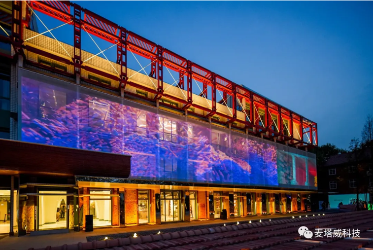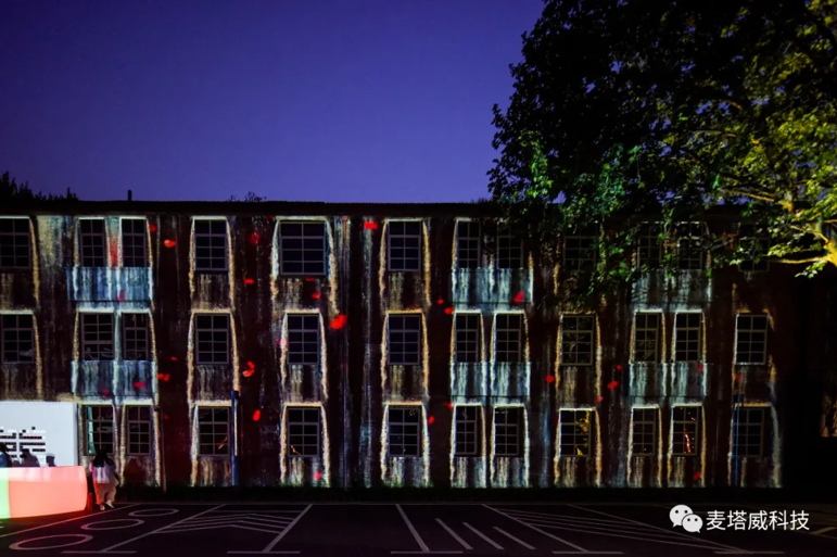 因红坊建筑外立面有许多延伸出的玻璃廊道且投影面较多,本次光影秀的呈现面临的挑战可谓前所未有。