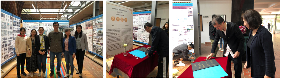 图9 设计学系已退休的聂云老师为郭同学亲切指导,建筑学系赵教授对展板设计深入分析,并提出修改意见