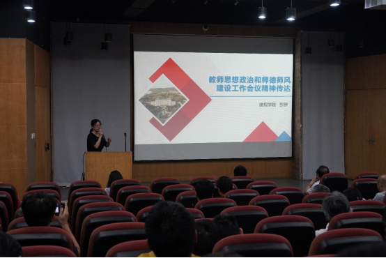 为充分贯彻落实立德树人的根本任务,加强学院师德师风建设,提升教师职业道德水平。6月17日下午,建规学院教师思想政治和师德师风建设工作会议在南四楼100报告厅召开,院党委副书记兼副院长彭翀作教师思想政治和师德师风建设工作会议精神传达,全院教职工参会。