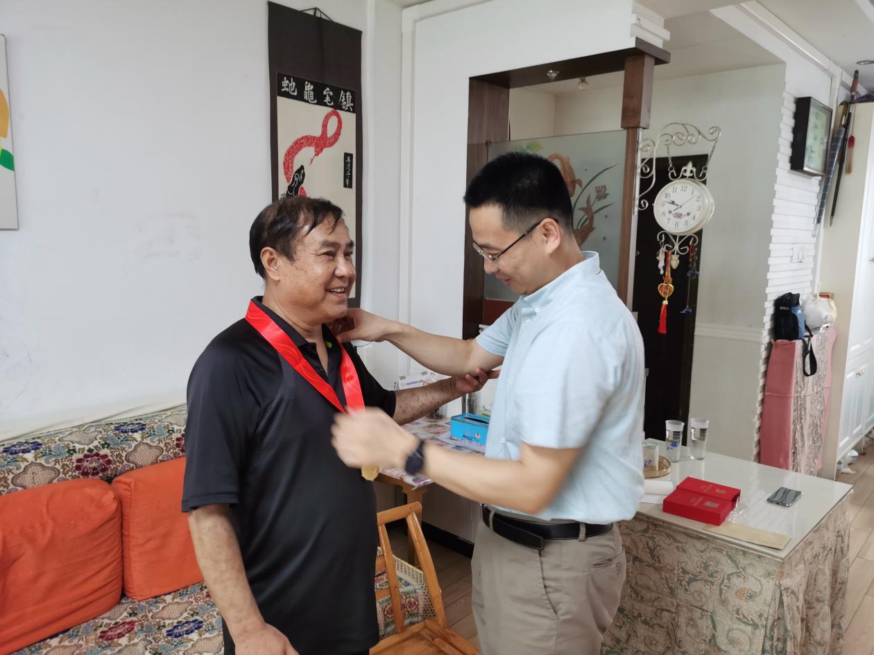 解孝林副校长来到龙秀珍老师家中,与龙老师亲切交流,关心了解生活和身体状况,仔细聆听龙老师回忆在校工作的点点滴滴,并代表学校党委感谢老同志为学校事业发展做出的重要贡献。龙秀珍老师表示,获得“光荣在党50年”纪念章非常激动,没有党就没有我的今天,感恩党的教育培养,祝愿伟大的党永远兴旺发达!祝福学校事业发展越来越好!