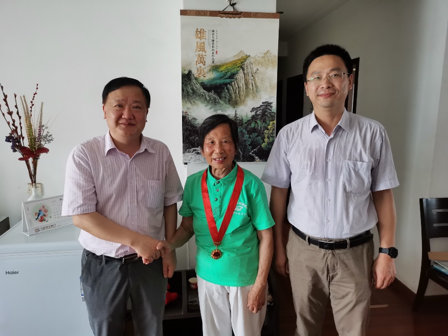 值此中国共产党成立100周年之际,中央决定于今年首次颁发“光荣在党50年”纪念章,这是中国共产党成立100周年庆祝活动的重要组成部分。近日,校党委常委、副校长解孝林专程前往看望学院老党员代表龙秀珍,并为其颁发“光荣在党50年”纪念章。学院党委书记钱思、院长黄亚平率院领导班子分别到学院老同志家中开展慰问,并为党龄50年以上的老师颁发纪念章。学院共有6名教师荣获纪念章,分别是白明华、龙秀珍、王祥和、罗文博、胡赛君和卜建平老师。