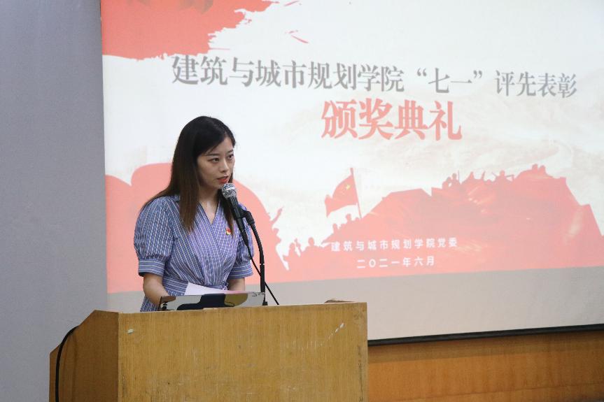 6月29日下午2:30,“七一”表彰颁奖仪式在建规学院南四楼100报告厅顺利举行,建规学院师生代表参会,党建辅导员庞灿楠主持。颁奖仪式上分别为本次“七一”表彰的优秀党支部和优秀共产党员颁奖,院党委书记钱思总结讲话。