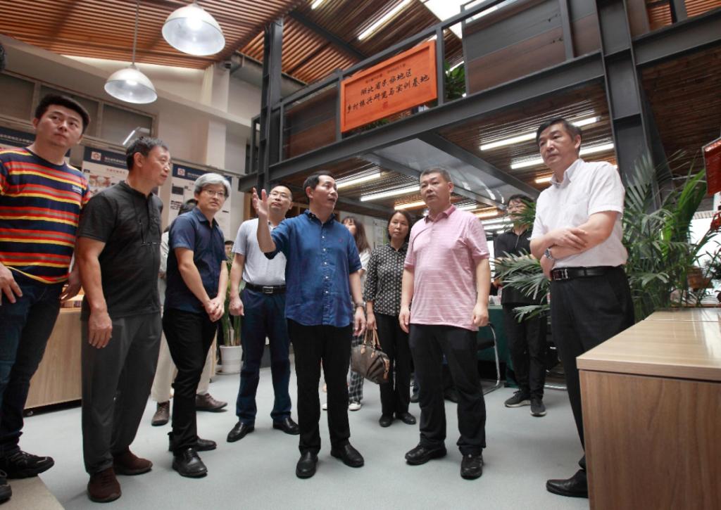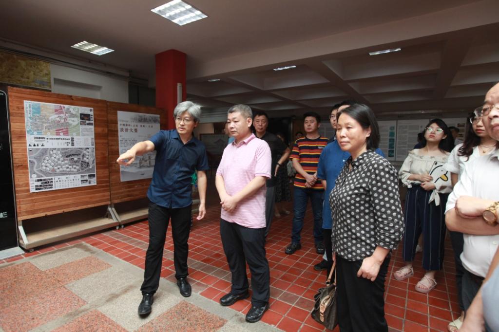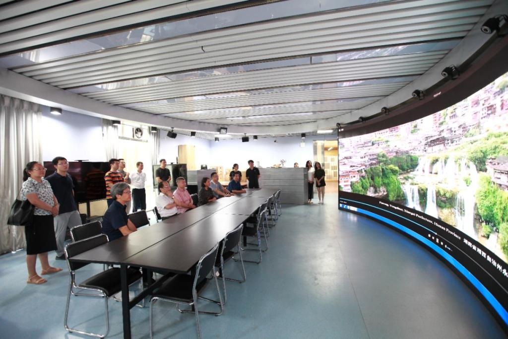 在建规学院中国民族建筑展厅,建规学院副院长谭刚毅教授介绍了全国各民族地区民居的建筑特色和存续现状,并由李敏芊博士研究生对相关设计代表作品进行介绍。在学院虚拟仿真实验中心,黄司长等听取了李晓峰教授关于民族村寨地区新技术运用的介绍,详细问询前沿科学技术对民族村寨研究支持的情况。