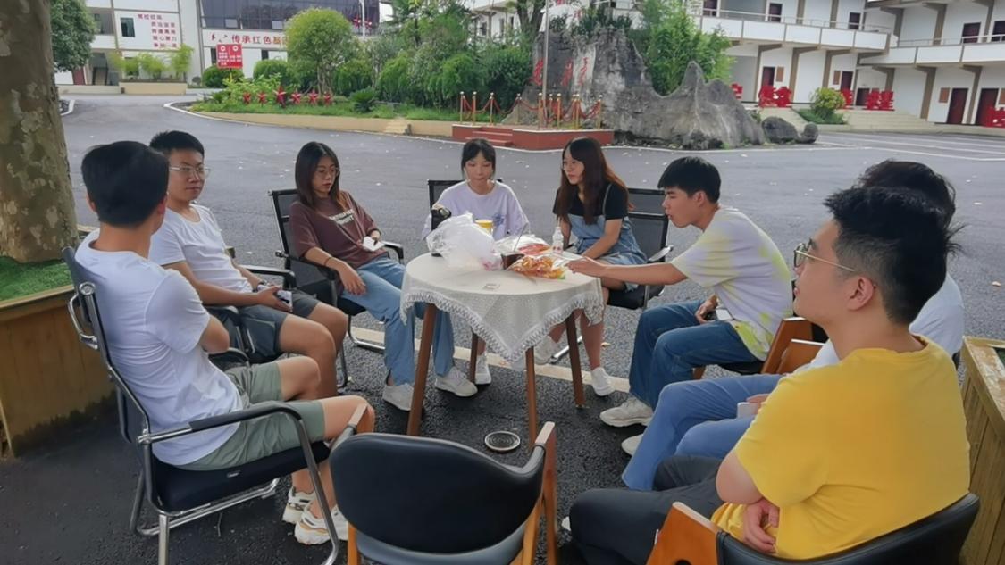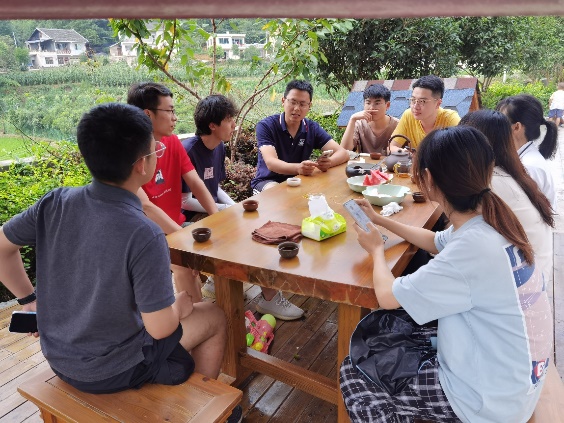 日常交流会的场地并不局限于会议室内,它还开在茶余饭后的饭桌上与停电时段的大树下。饭桌上,老师们耐心倾听同学们的生活、实践情况、专业知识疑问与未来规划等方面的疑惑,并结合自己的经历与经验,给予了大家丰富的分享与宝贵的建议,句句肺腑,队员们获益颇丰,对未来也有了更多的思考与更明确的方向;生活无常,偶有停电时分,老师与队员们摆起室外茶桌,在轻松的氛围中畅聊自己的生活与工作情况,增进互相的理解的同时,也使自己在忙碌工作中紧张的心情得以放松。