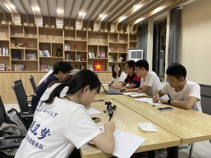 在初步认知遵义市乡镇发展概况后,队内就后续的工作安排开展了一次交流会。庞灿楠老师对“永远跟党走”与“红色寻访”的主题工作进行了初步安排。林颖老师向服务队同学们讲解了本次乡村规划设计工作的注意事项与成果侧重点。同时,队员们也交流讨论了遵义市的红色历史文化。队员们表示,参加本次党员先锋服务队是一次挑战,也是自我提升的一个好机会,在工作过程中一定会全力以赴。