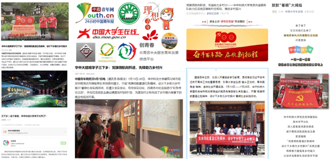 服务队的事迹受到了团中央官方网站中国青年网、教育部主导并推动的“中国大学生在线”微信公众号报道和地方各级宣传平台的推送总计20余篇报道,并荣登学习强国宣传平台、创青春官微,集中展现了我院社会实践团队深入乡村、扎根乡村、服务乡村的青春作为。