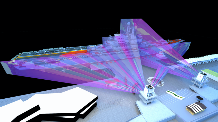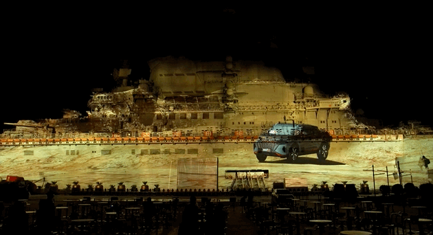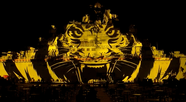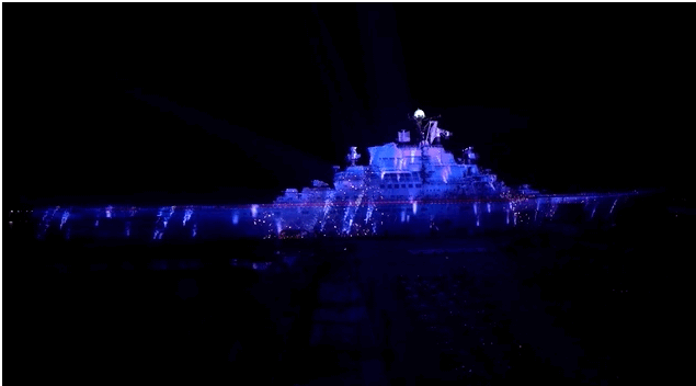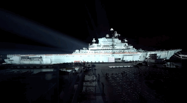 “基辅号”的体量之大给投影秀的制作带来了重重困难。此次投影的面积之大,需要使用42台40K工程投影机同时工作,覆盖“基辅号”航母的整个舰体。