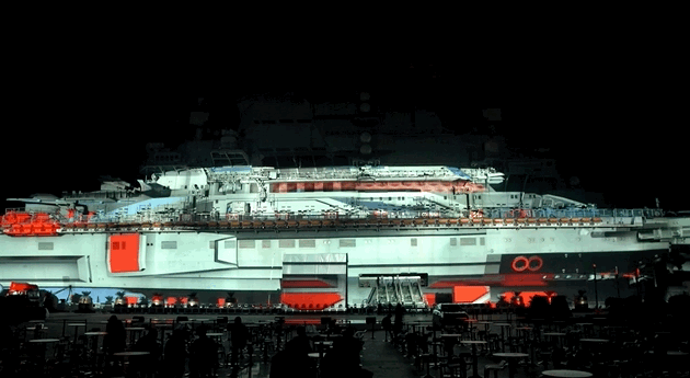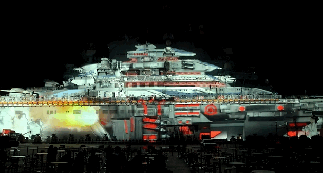 辛苦努力的结果自然是收获满满,在一次次的调试之后,一部视觉饕餮盛宴终于跃然纸上,首场航空母舰全尺寸投影秀,全球首演,耀世“起航”!