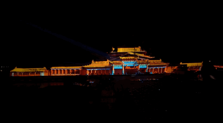随着一枚红色信号升空,揭开了本场光影秀的序幕。