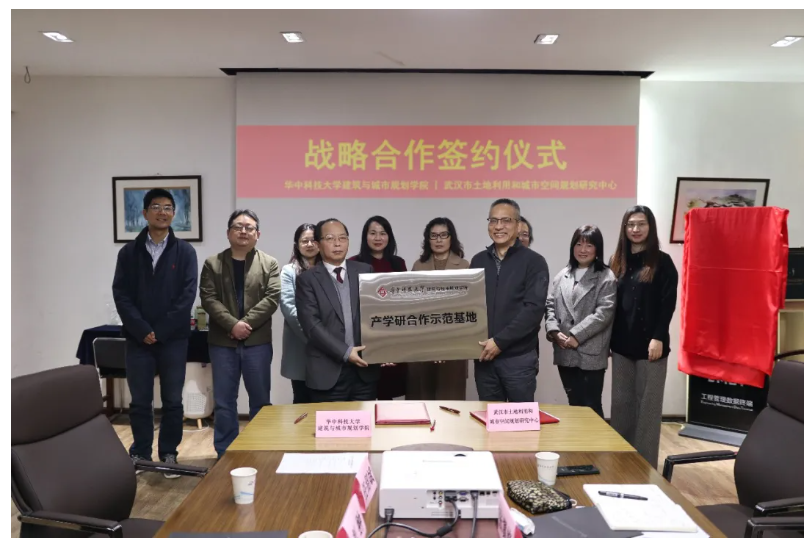 最后,黄亚平院长与郑振华主任签署了“太阳集团网站8722与武汉市土地利用和城市空间规划研究中心战略合作框架协议书”,并举行“产学研合作示范基地”授牌仪式。双方与会嘉宾合影留念,并对今后的合作表示期待与信心。