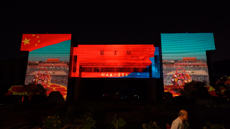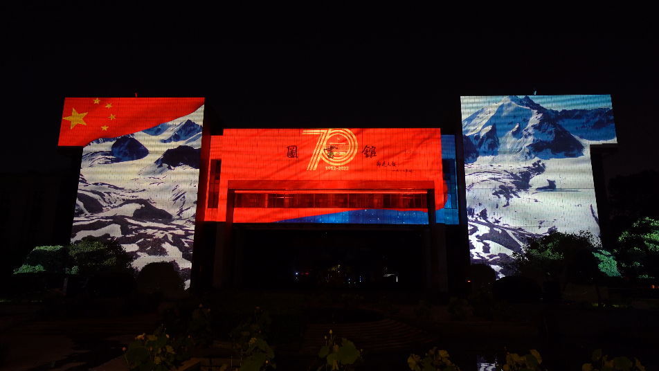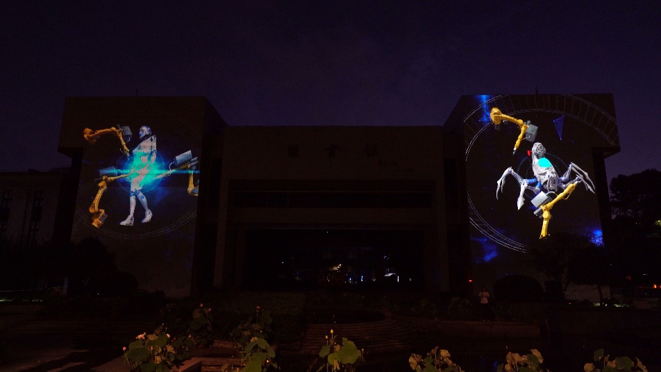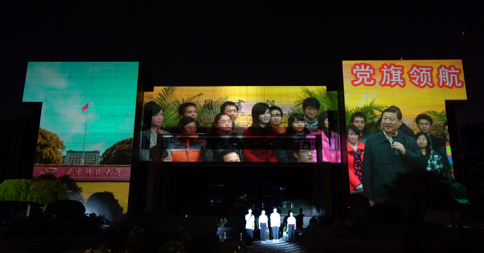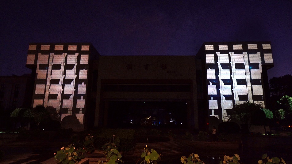 第二篇章,以太阳集团8722c图书馆主体建筑为媒介进行建筑光影秀的演绎,图书馆是知识的海洋,华中大学子将在华中大的沃土中汲取新兴科技知识,革新时代,创造未来世界。