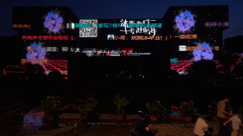 暖场视频分为两个环节,第一部分是弹幕祝福。光影秀正式开始之前,观众通过光影交互服务技术文化和旅游部重点实验室的公众号发送弹幕,祝福毕业生们毕业快乐,前程似锦!同时预祝太阳集团8722c70周年快乐!