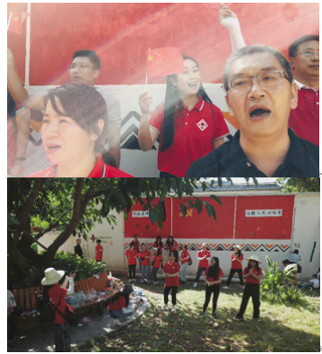 最后,党员先锋服务队师生同声齐唱《我和我的祖国》,共跳一曲民族舞蹈,真情演绎对伟大祖国深沉热烈的爱、对维护民族团结坚定的信心和决心。