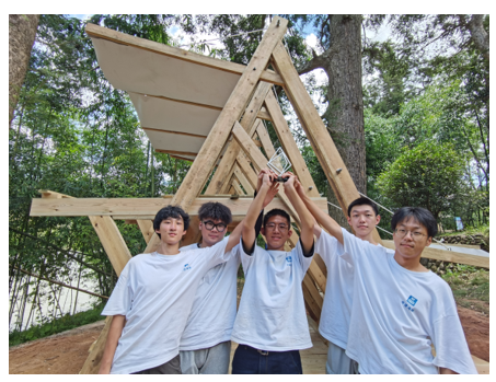 在实际搭建手忙脚乱地应对各种突发状况的过程中认识到了前期准备的重要性。同时通过这次比赛更加深刻地认识到了设计与落地之间的差距。一个小亭子就要面临这么多困难,更不用说真正的建筑。因此作为建筑师更应该起到统领全局的作用。在建造中印象最深刻的便是乐观努力的队友们和亲自上手的老师,感谢大家的包容与互助,这才是让我真正不虚此行的东西。