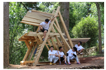 在两天的实体作品建造中,师生齐上阵,克服重重困难,用极强的意志力与团队合作精神将这座“自然的羽翼”成功建成,收获颇丰。