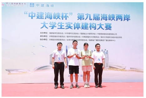 8月1日至4日,建筑系本科二年级团队5位同学吴杰楷、张浩哲、蔡吉翔、颜瑞捷、宋泽润在周钰老师的带领下代表学院参加“中建海峡杯”第九届海峡两岸大学生实体建构大赛总决赛,竞赛作品“SWINGS”在海峡两岸14支高校队伍中脱颖而出,喜获银奖。