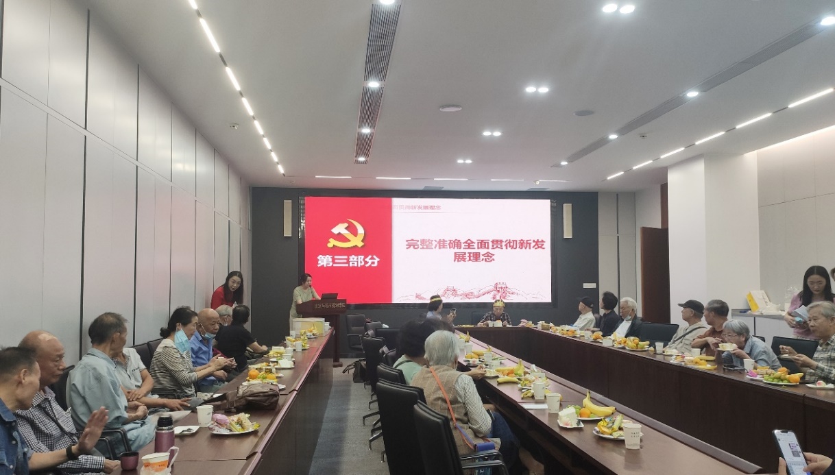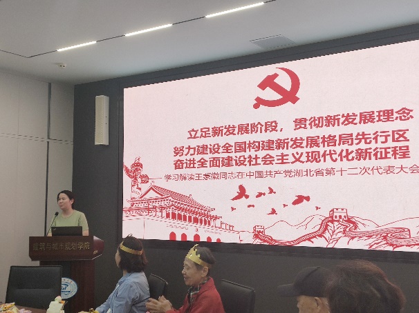 紧接着,今天的座谈会进入第三大环节:共学中国共产党湖北省第十二次代表大会精神。由院党委副书记何立群带领老师们开展了主题为“立足新发展阶段,贯彻新发展理念”的政治理论学习与交流,何书记从过去的成就、新形势新任务、完整准确全面贯彻新发展理念等方面全方位解读了王蒙徽同志在中国共产党湖北省第十二次代表大会上的讲话,内容详实,引发了现场热烈的讨论。