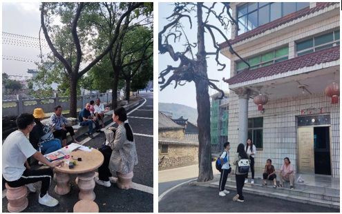 调研团队走进曹家堍下角湾,深入房前屋后、前屋后院、田间地头与村民进行交流、开展村湾人居环境现状调查,了解村民参与人居环境改善面临的难点问题,通过与多元社会主体进行现场沟通,明晰当地村民社会关注和公共议题。通过村湾民意调查,曹家村村民对近年来持续改善的乡村人居环境整治与红色美丽乡村建设等工作非常认可,“比原来的环境好多了”,“很满意,非常好”都是村民们的真实想法。村内不仅有专门的清洁人员,村民们也组建志愿队伍,积极开展环境整治活动,对旱厕、危房进行拆除,还原成小菜园、小果园、小花园,进一步提高了村民的幸福指数。同时,村湾传统建筑与新建房屋如何更好融合值得进一步深入规划与思考,需探索出路径与方法,让村庄建设与传统建筑文化保护与传承更加有效结合,进一步发挥村庄作为鄂东南地区红色革命资源优势,通过红色旅游激活村域山水生态资源要素,推动乡村产业振兴和生态宜居建设。