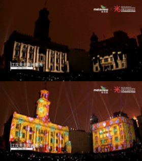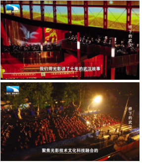 蔡新元教授团队最早在2013年在江汉关上做了全国第一场城市灯光秀。整场3D光影秀,投影面积达7000平方米,以“最大规模、最短筹备时间、最丰富内容”,充分体现了独特创意、技术创新以及文化与科技的融合。