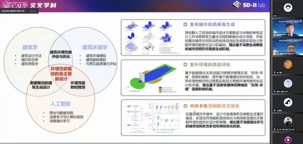 同济大学姚佳伟副教授以《环境性能驱动的自主智能设计》为题,指出环境性能驱动的设计工作流则将环境评估置于设计初期,通过循环判断持续对设计方案进行环境性能优化,可极大增加设计决策与其环境性能影响的交互和反馈。研究团队通过建筑学、建筑环境学与人工智能交叉研究,以环境性能驱动的自主城市设计目标,对复杂城市的高保真生成、室外环境的高效评估、高纬参数空间的交互优化方法、生成逻辑进行了详细介绍。