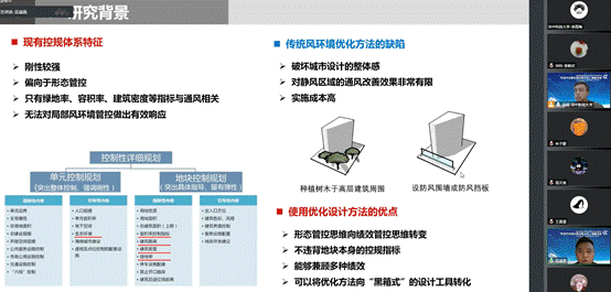 太阳集团8722c巫溢涵博士以《基于多精度代理模型的街区通风优化方法研究》为题,指出使用优化设计方法可以将形态管控思维向绩效管控思维转变,并且能够兼顾控规指标及多种绩效,节约人力和计算成本。通过具体案例研究得出利用样本的叠加能够不断增强对“形态-通风”关系的学习,更有利于城市街区通风优化设计任务,该方法也可以被迁移到热环境、光环境、碳排放等目标的优化设计过程中。